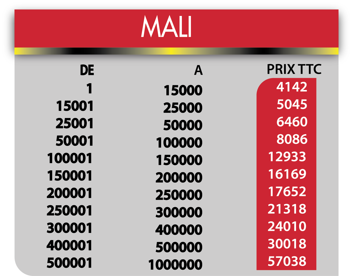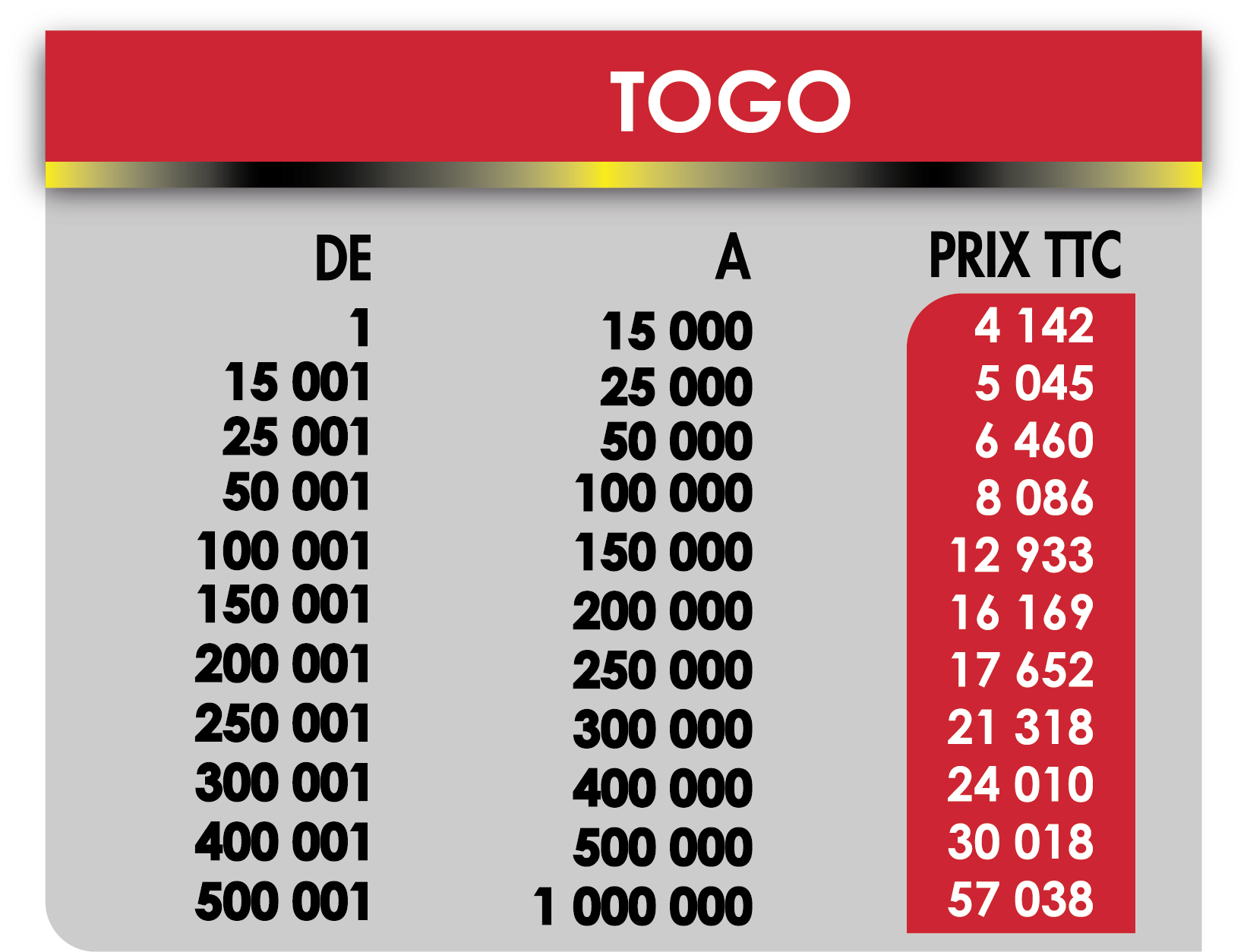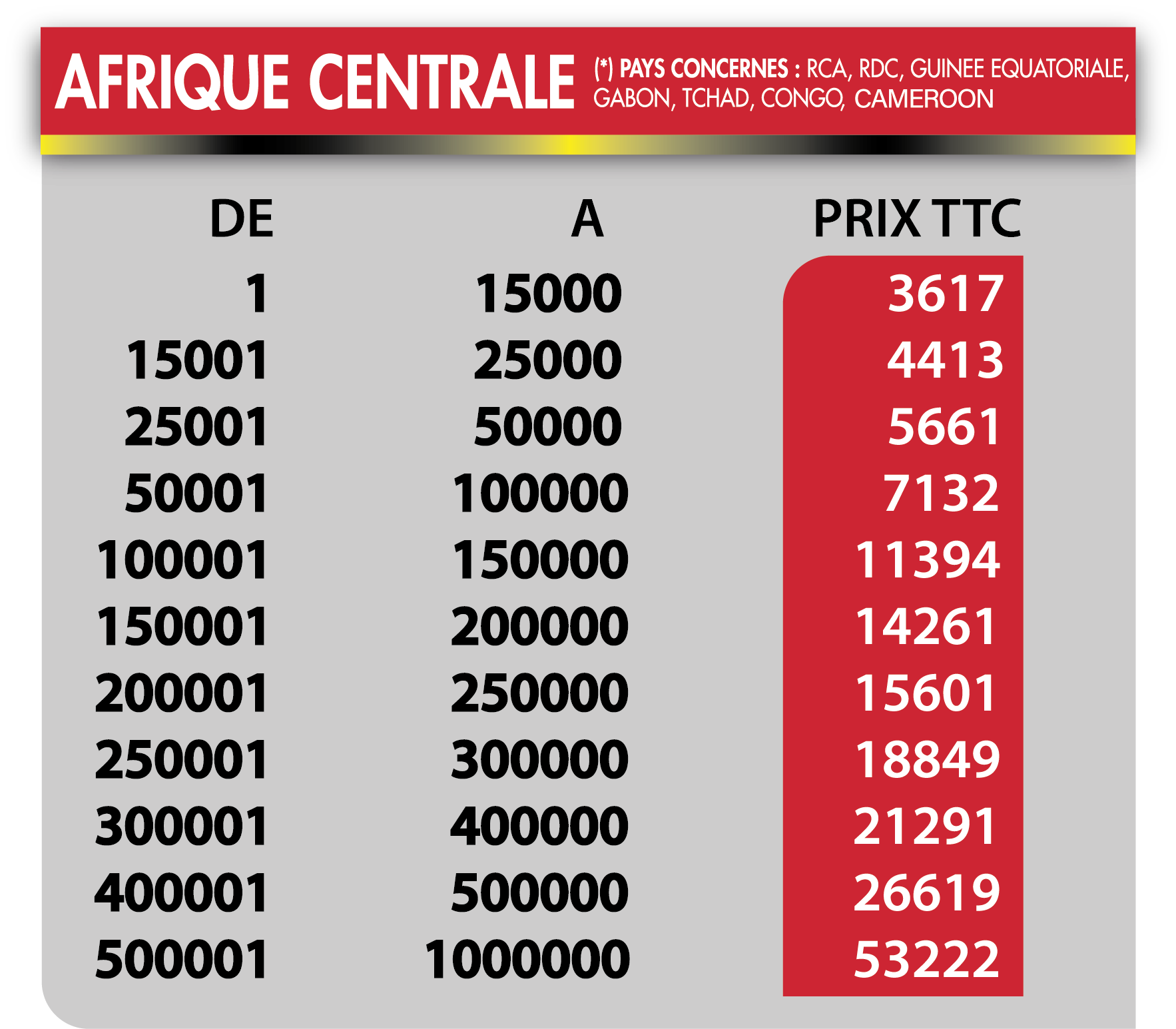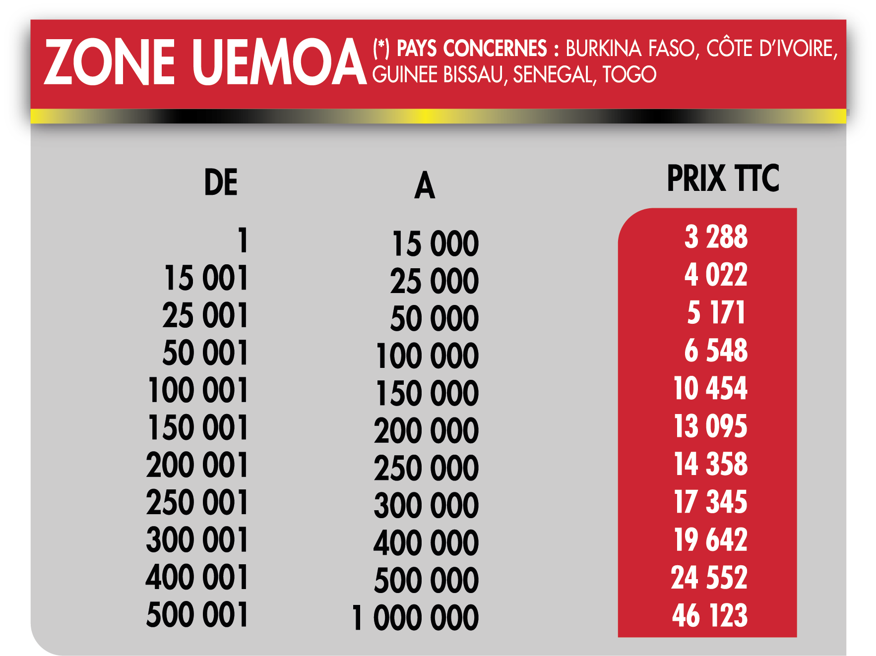 Tarif internationaux