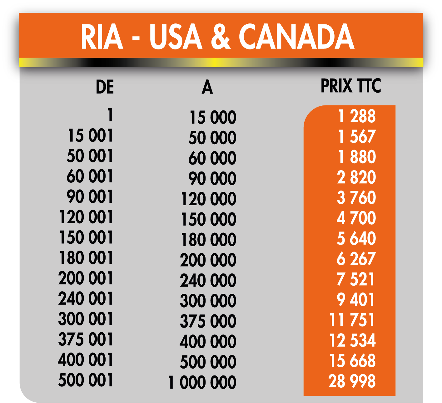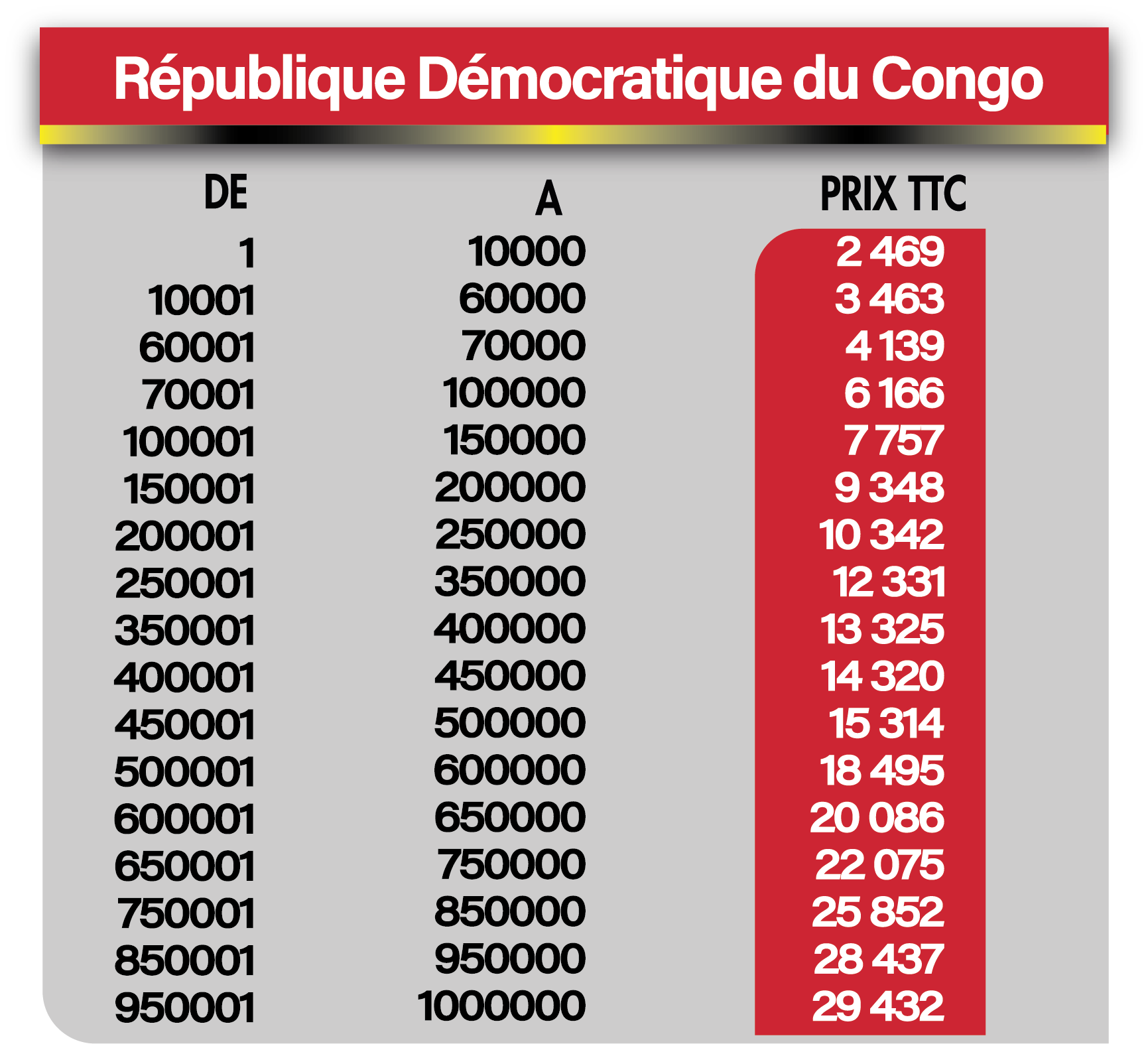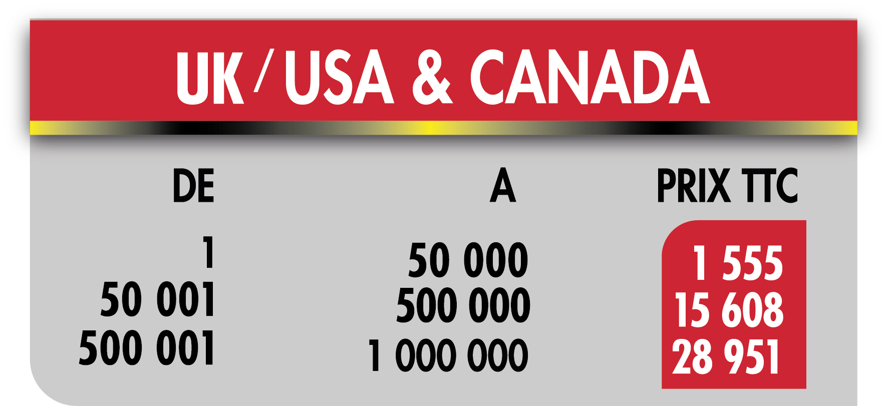 Tarif internationaux
