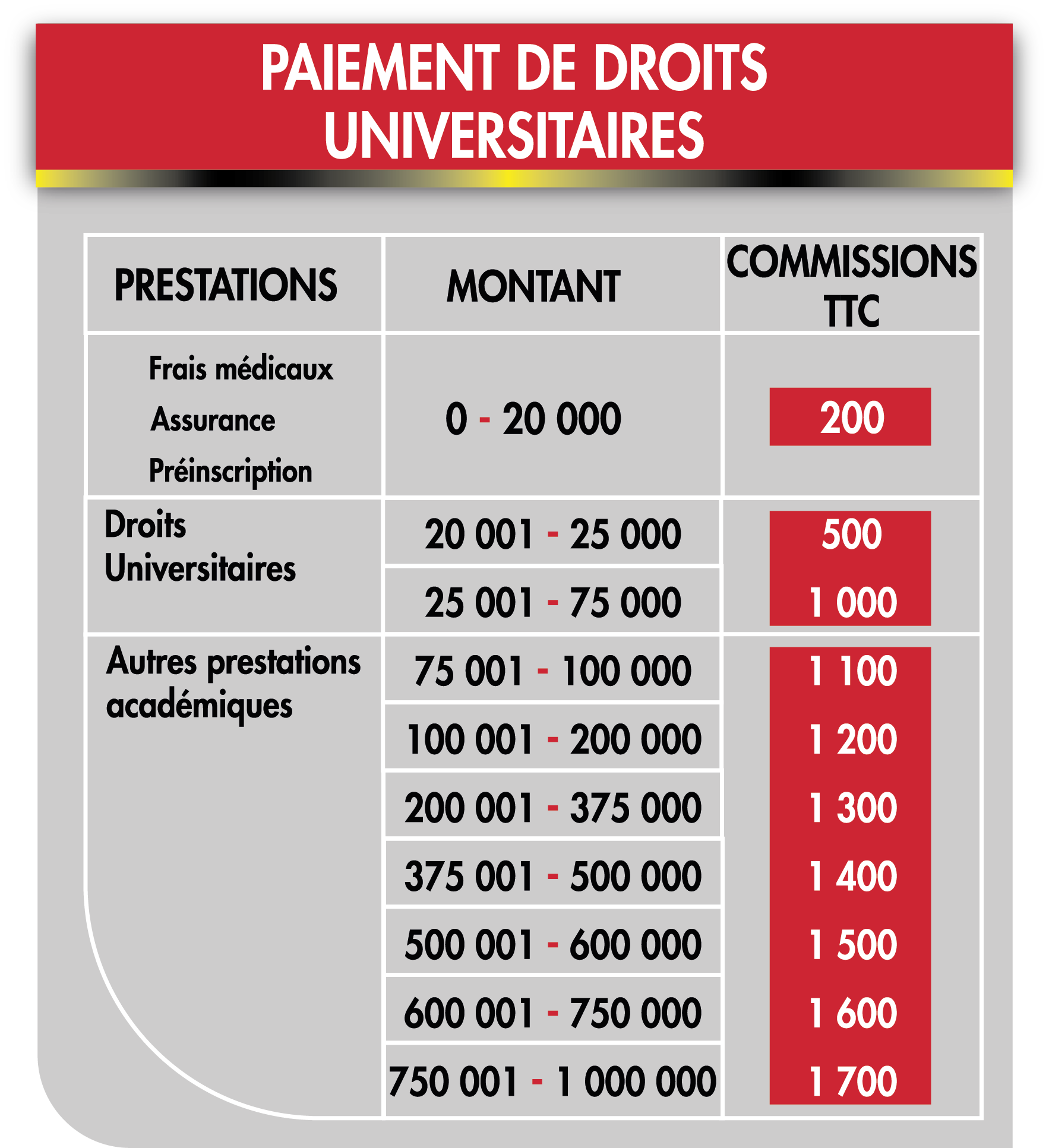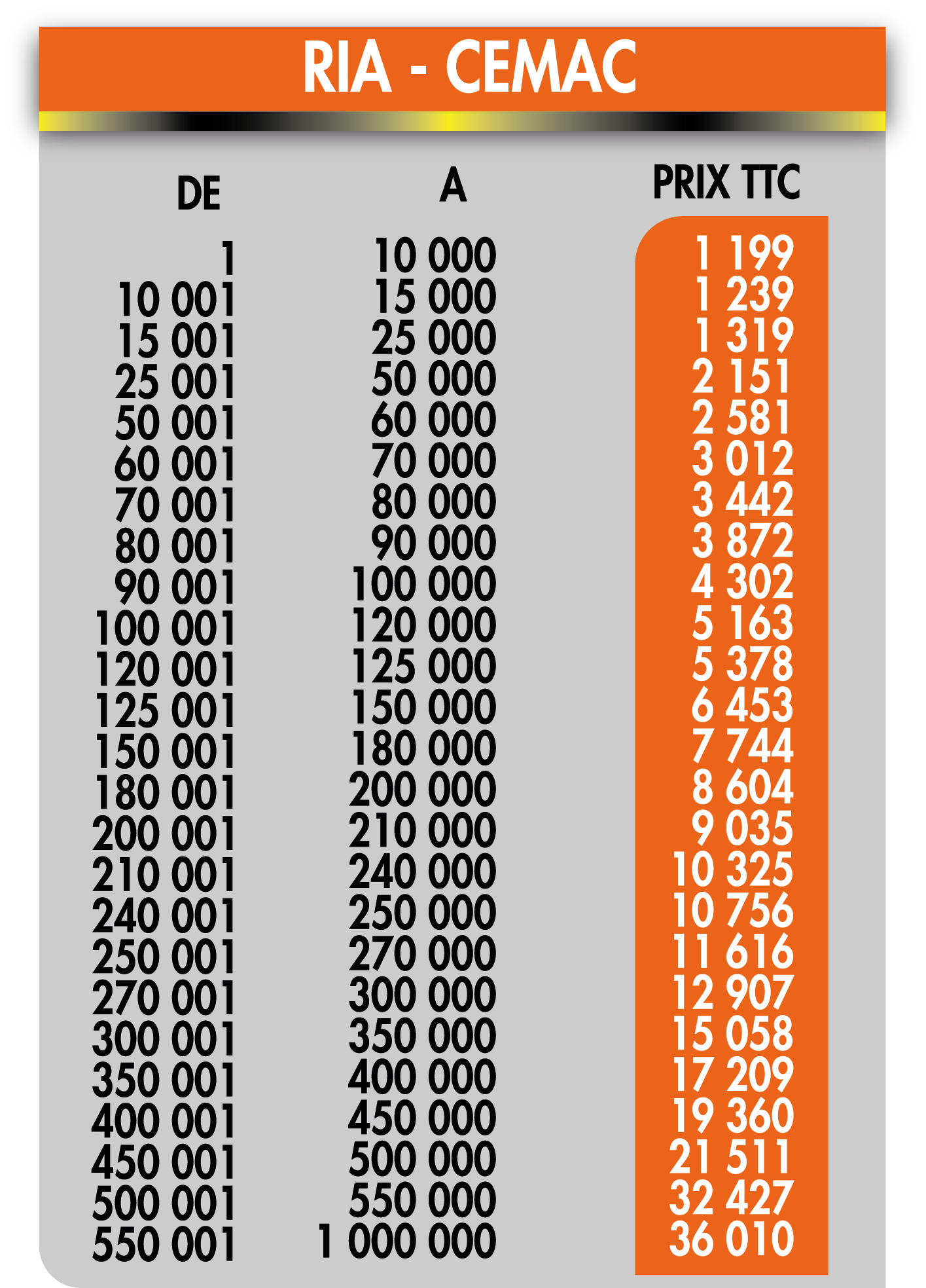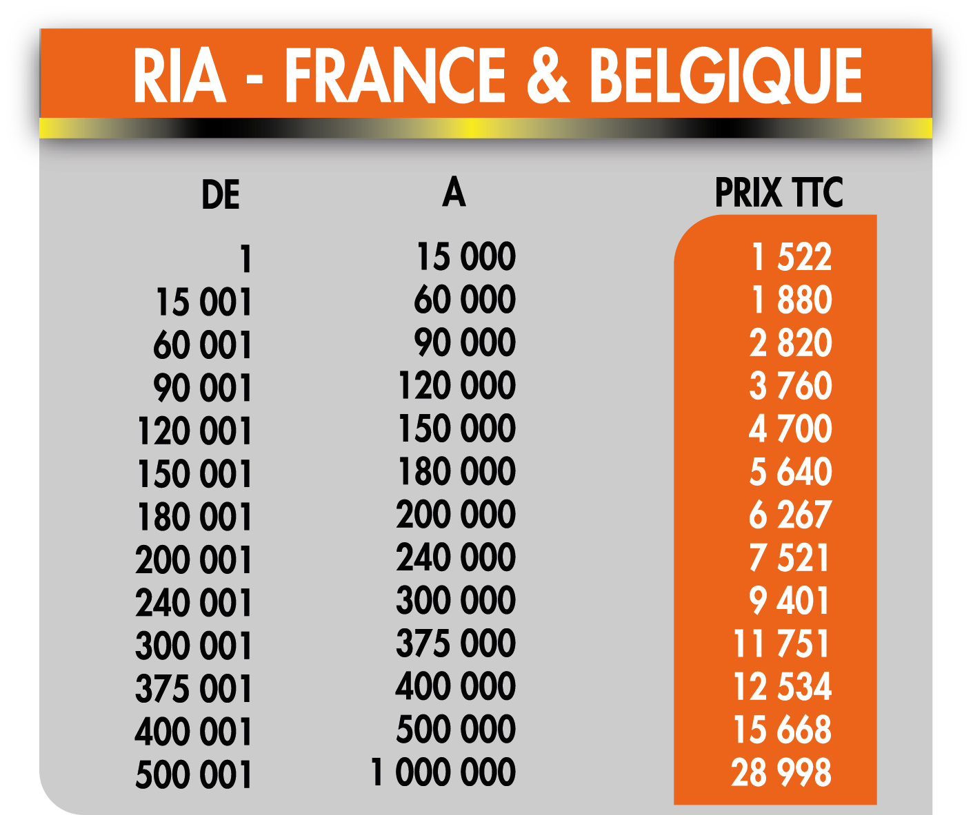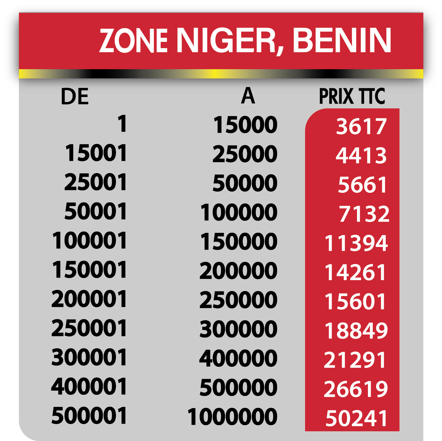 Tarif internationaux