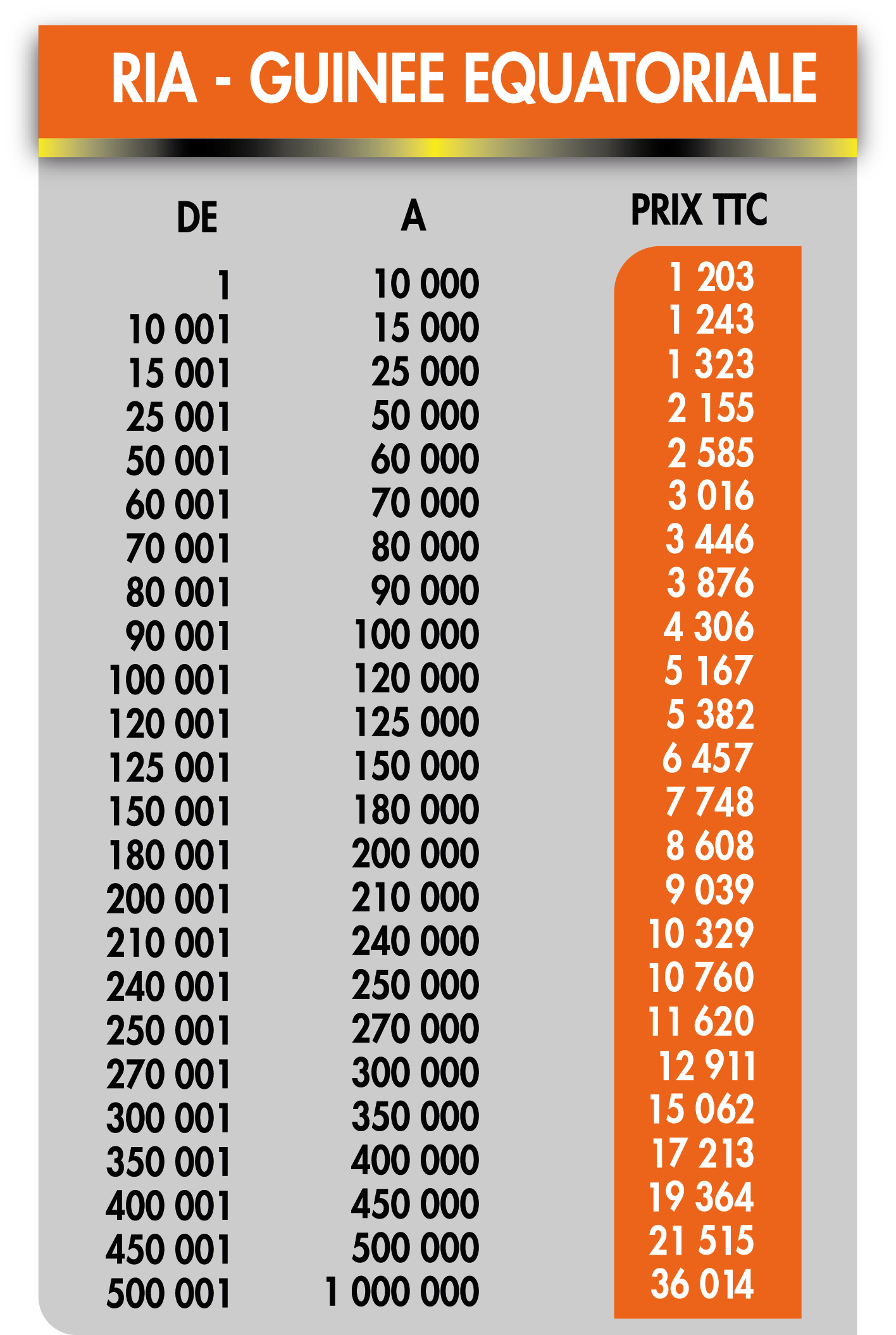 Que ce soit pour envoyer de l’argent à vos proches ou pour soutenir vos partenaires à l’étranger, Express Exchange S.A. vous propose des tarifs compétitifs, transparents et adaptés à chaque destination. Grâce à notre réseau mondial et notre service express, vos transferts arrivent en toute sécurité, en un temps record. Faites le choix de la performance au meilleur prix. Voici les tarifaires internationaux Express Exchange S.A.: